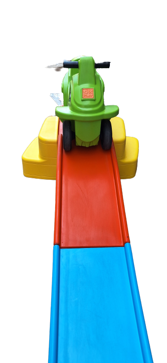 • The coaster ramp features molded-in, recessed wheel wells to keep the coaster car steady until toddlers are ready for another ride.