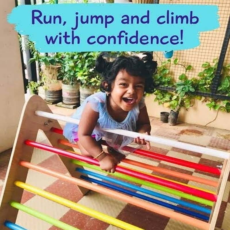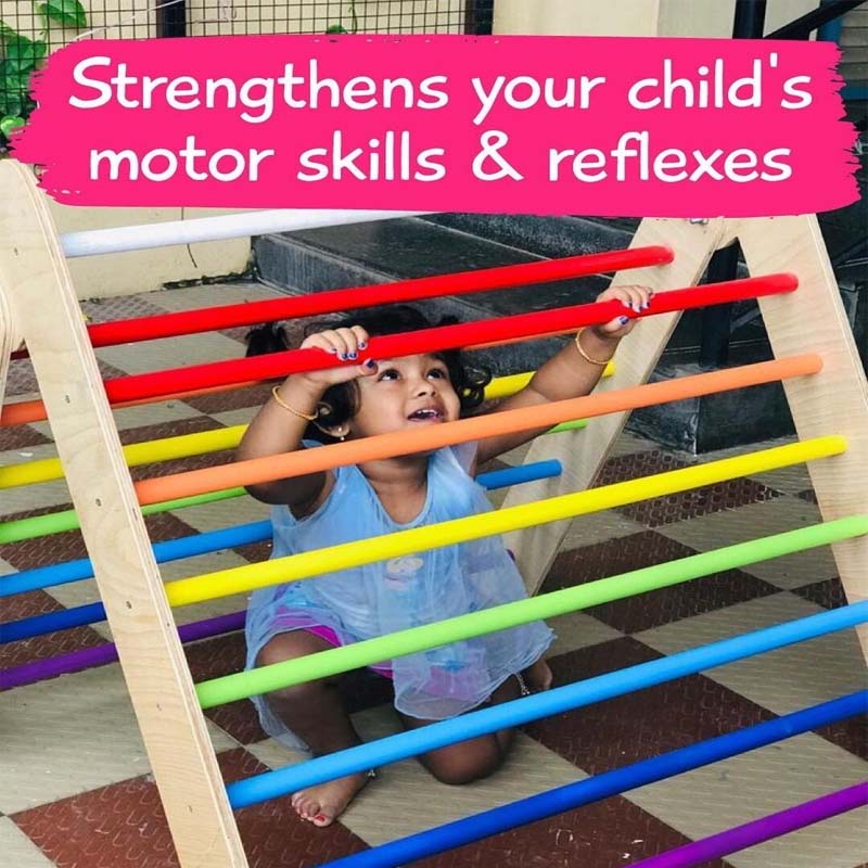 • The Pikler Triangle is a wonderful way to strengthen your child’s reflexes and motor skills. It sets the stage for them to imagine endless worlds around them.