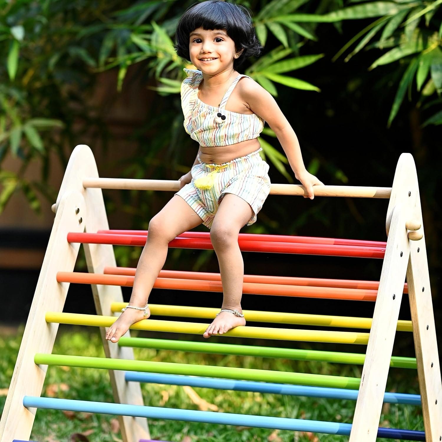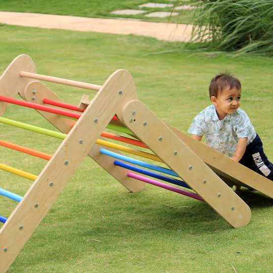 • The Pikler Triangle is designed to support the development of gross motor skills, balance, and coordination in children aged 1 to 6 years old.