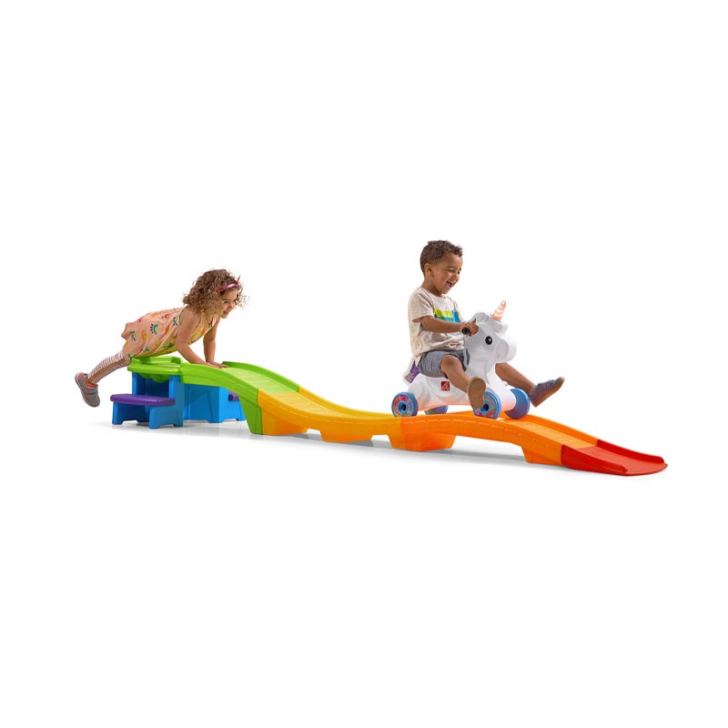• Recessed retainer wells hold the unicorn coaster car until little ones are ready to roll.
